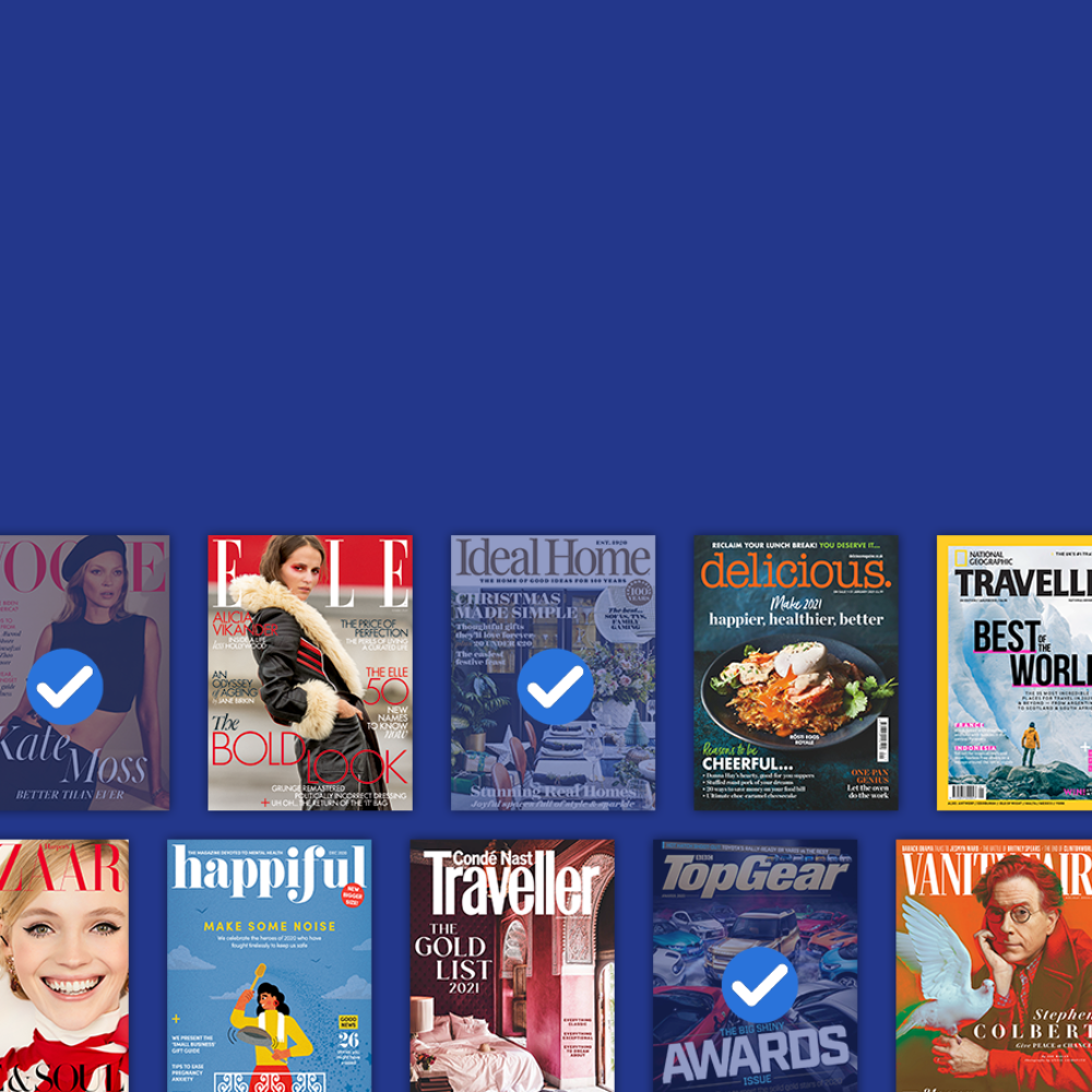 Choose from an enormous selection of the UK’s top magazines titles to subscribe to and save up to 50% OFF cover prices. Month to month or annual subscription. Swap your titles whenever you like!!